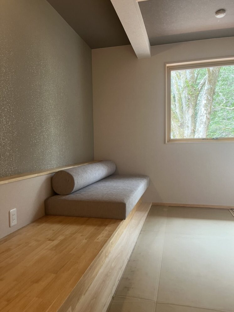 畳に座る、あぐらをかく、正座をする、寝転ぶ等、椅子とは違い、姿勢が自由で身体と床の距離が近い。これは単なる生活様式ではなく、空間スケールそのものにも影響してきます。低い目線の暮らしは、落ち着き、安心感、余白を生みだします。