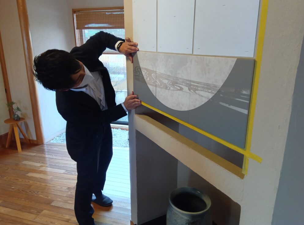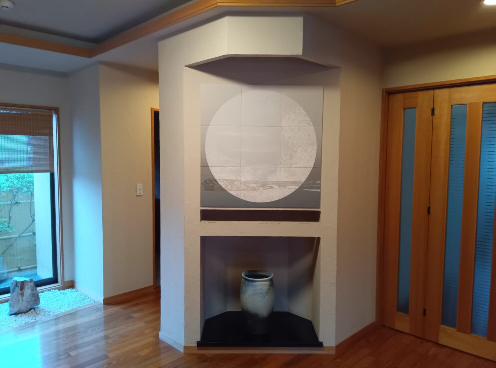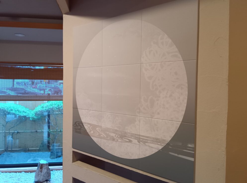 展示場の雰囲気に合わせて月の絵のデザインにしました。その他にも花柄や幾何学模様のデザインもあり季節や気分に合わせて模様替えができます。