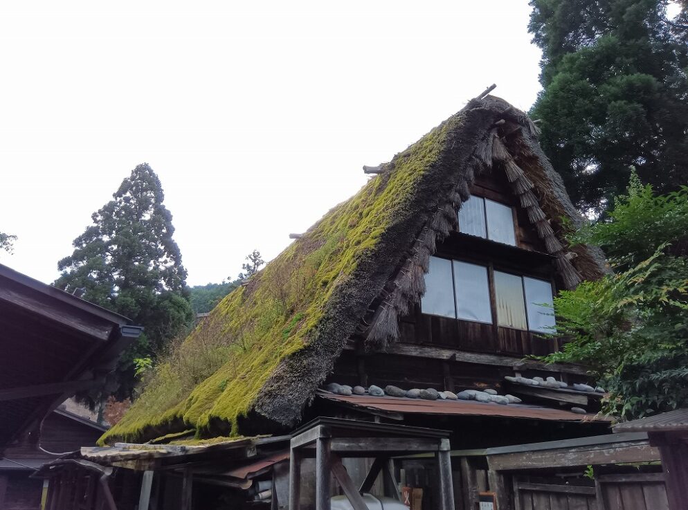 特にあまり太陽の当たらない北面の屋根は、茅が湿気るので老朽化が速いそうです。さらに、近くの山から吹いてきた草の種や鳥が持って来た草の種などによって、屋根の上に草や小さな木が生えてくるそうです。実際に生活をしていた頃は、囲炉裏で火を焚いたりするので茅もさらに長持ちしたそうです。