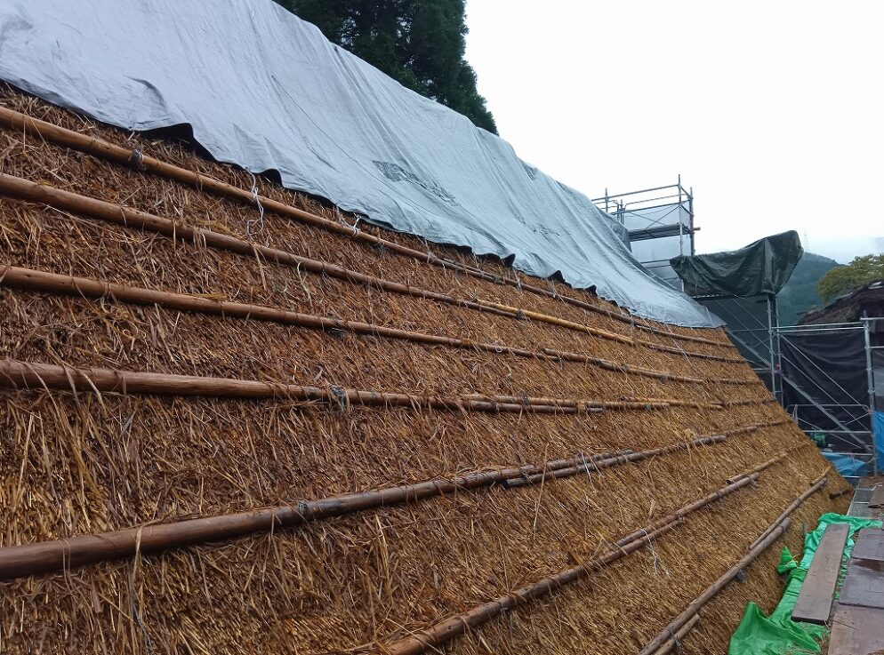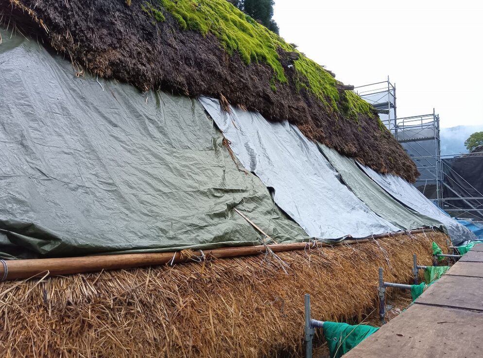 葺替えの時は、雨天時の事を考えて下段と上段に分けて雨養生がしやすいように作業をします。