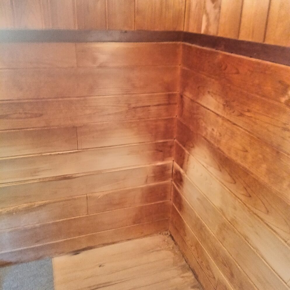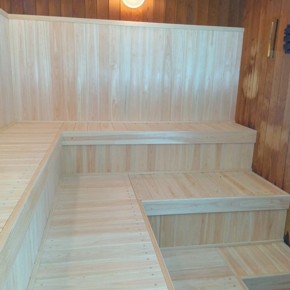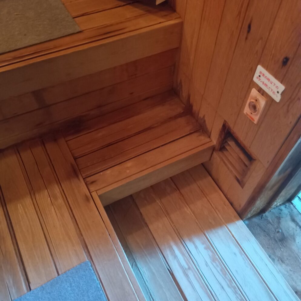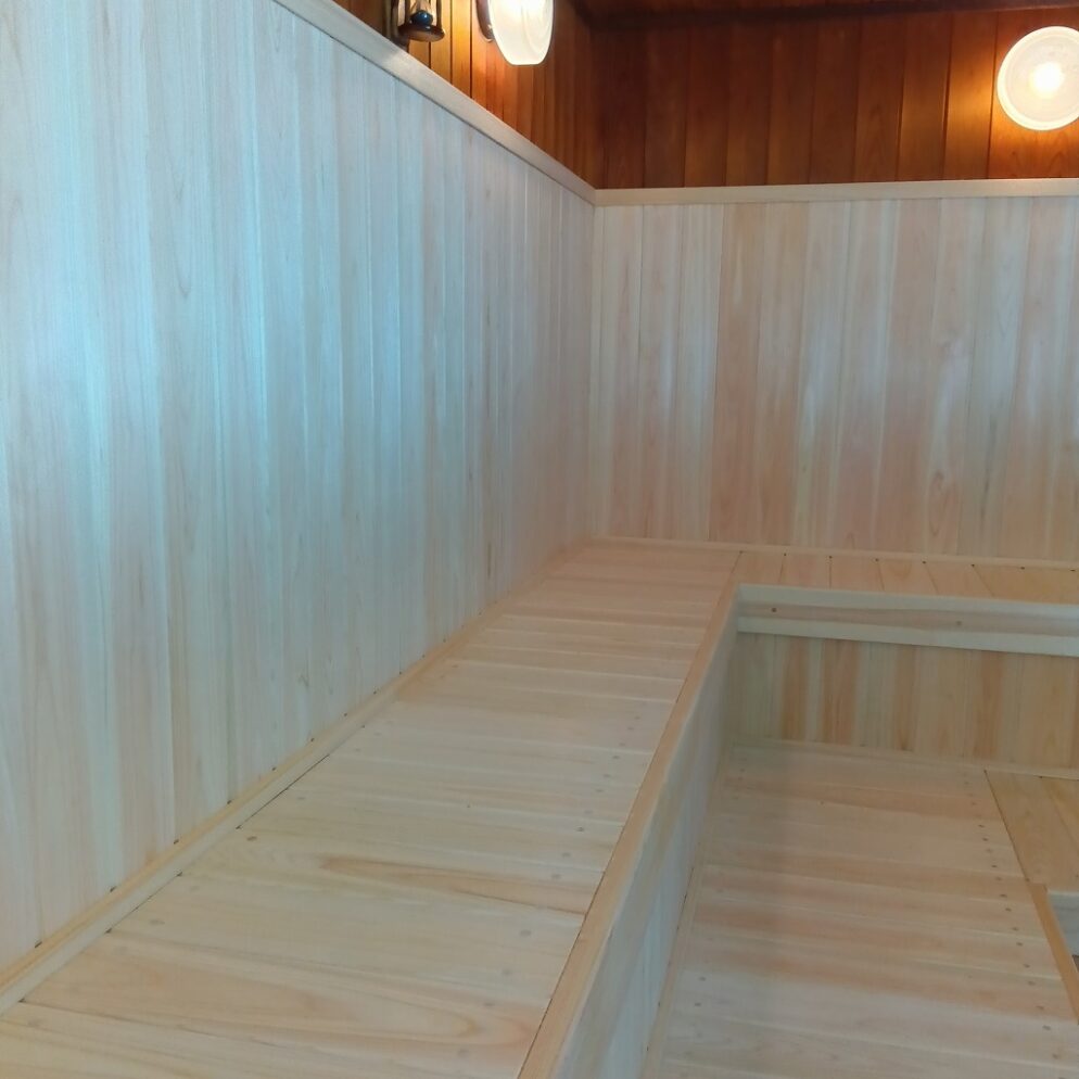 工事内容ですが、サウナ室の壁(一部)・床の張替えです。