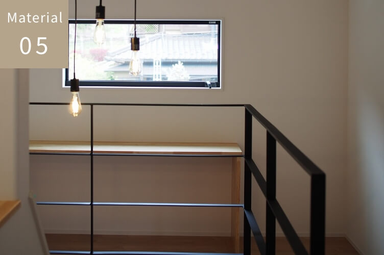 時を重ねるほどに表情を深めるアイアンと真鍮。アイアンは、直線的ですっきりとした意匠が空間を引き締め、木の家にほどよい緊張感を与えます。真鍮は使い込むほどに色合いが変化し、味わいが育っていく素材。それぞれ異なる魅力を持ちながら、住まいにさりげない上質さと個性を添えてくれます。