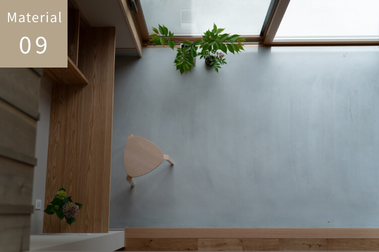 滑らかな質感と無機質な表情が、空間を静かに引き締めるモルタル。装飾をそぎ落としたシンプルさが木の家の素材感を引き立て、空間の雰囲気をそっと支えてくれます。土間や玄関まわりで日常のシーンになじみ、暮らしの風景をひっそりと美しく整えます。